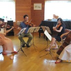 ミュージックキャンプ受講生を中心としたカルテットでモーツァルトの弦楽四重奏曲第4番をリハーサル。